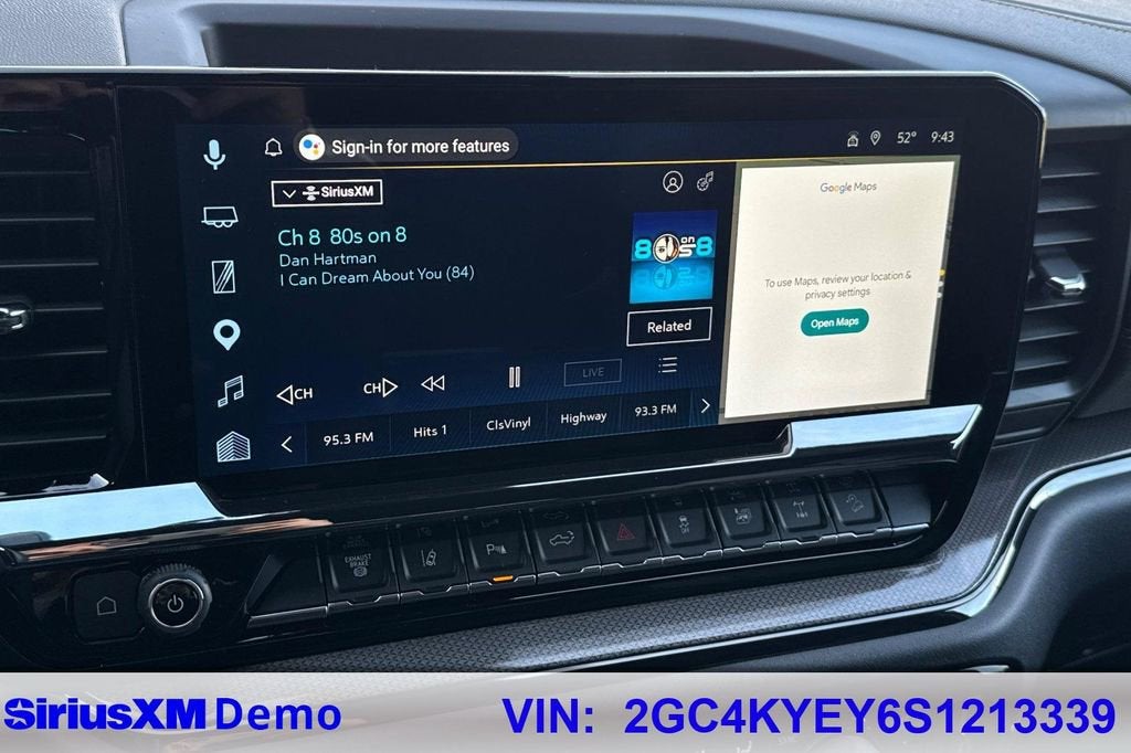 - 13.4" diagonal Chevrolet Infotainment 3 Premium System with Google built-in, includes multi-touch display, AM/FM/SiriusXM1 radio capable